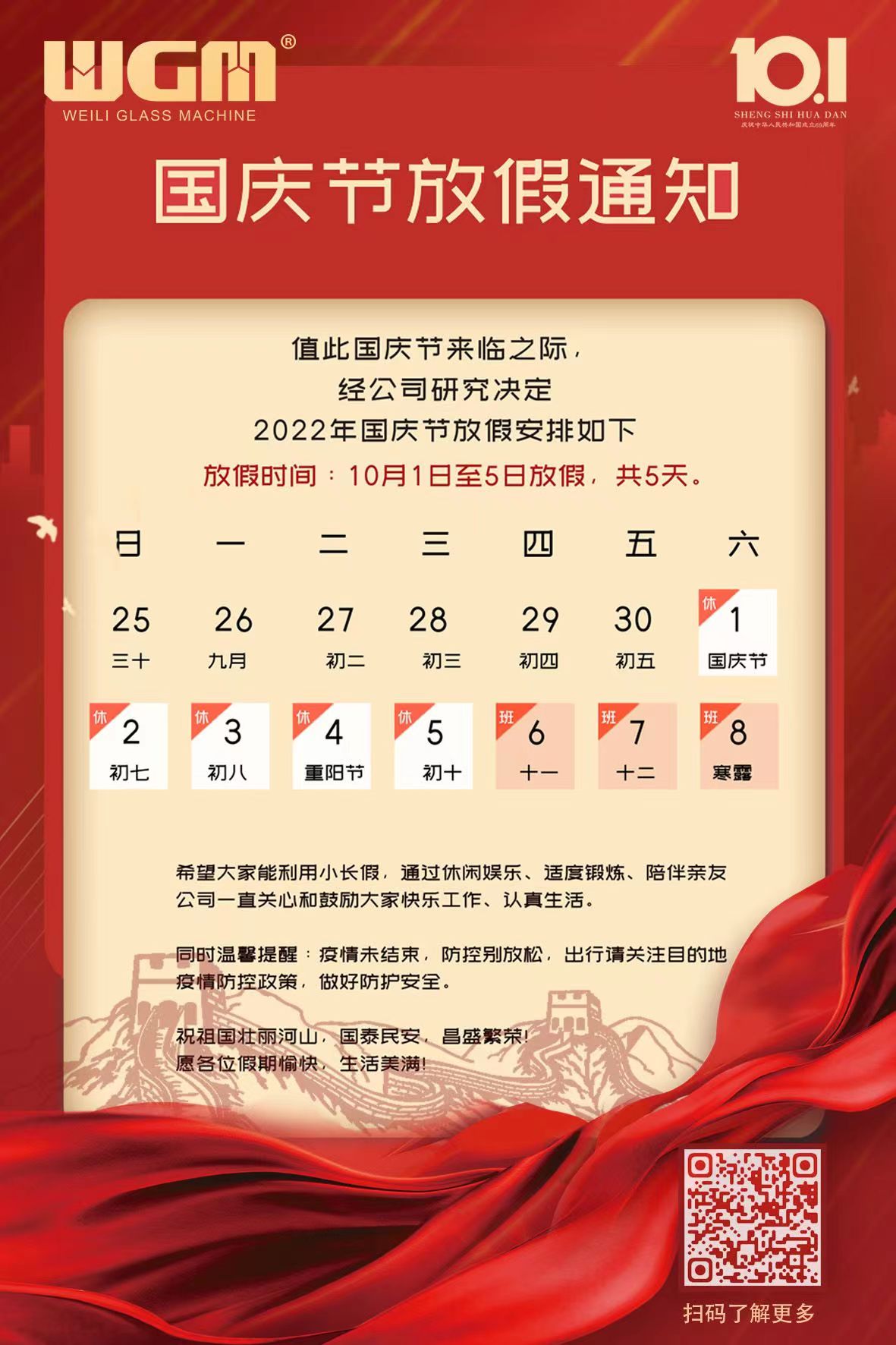2022年10月1日(周六)-10月5日(周三)為國(guó)慶假期,