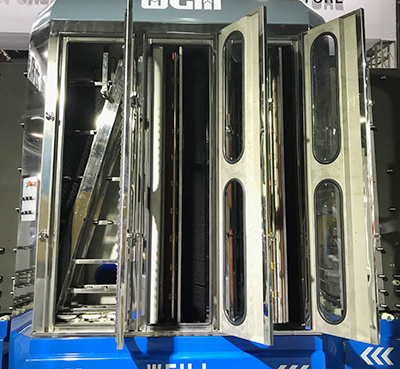 5、清水用水可循環(huán)使用,3臺(tái)潛水泵進(jìn)行供水,水箱有水加熱裝置,可使水加熱,用溫度在50℃左右的水來(lái)清洗玻璃,效果更佳。